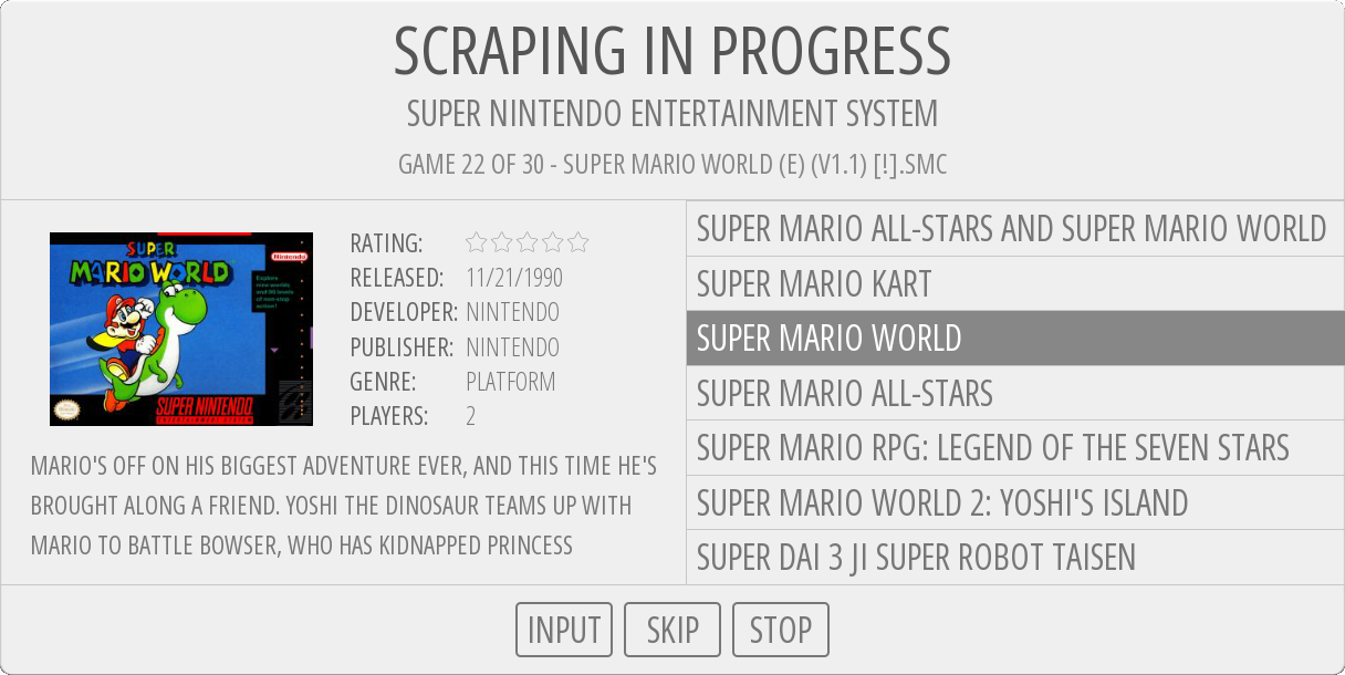 EmulationStation includes a custom theming system that gives you control over how each screen looks on a per-system basis, from the system select screen to the game list.